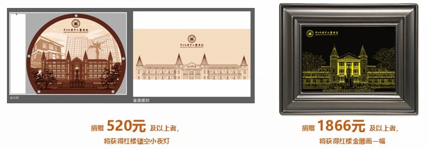 心系中山医,水汇成江河。大陆娱乐城 特别设置100元、159元、186.6元、520元、1866元五个定额捐赠金额,方便您选择(您也可自行设置特定的捐赠金额),捐赠者可获大陆娱乐城 文创一份。(仅限现场捐赠领取,领取地址:中山大学广州校区北校园红楼后座215;数量有限,先到先得。)
