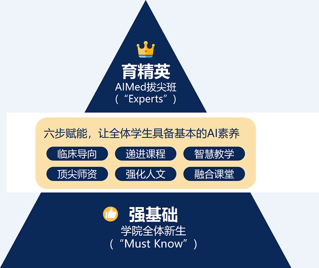 第一期AIMed拔尖班拟于2026年暑期从2025级学生中完成遴选,并于 2026年秋季学期正式成班开课。