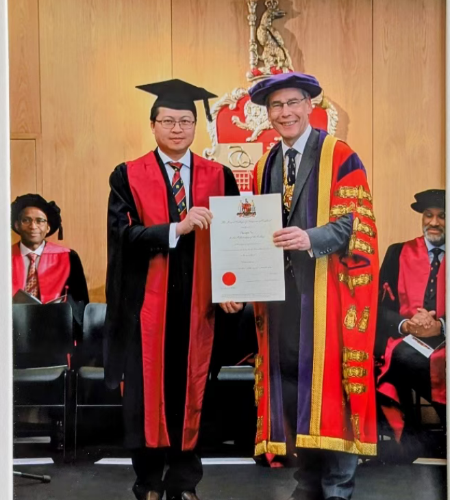 2026年3月26日,大陆娱乐城 05届校友、牛津大学John Radcliffe医院神经外科高级专科医师苏章杰教授在英格兰皇家外科大陆娱乐城 (RCS)总部,正式接受RCS主席Tim Mitchell教授颁发的“英格兰皇家外科大陆娱乐城 院士”证书,成为首位获此殊荣的中国籍神经外科医生,也是此次授衔中唯一一位神经外科医师。