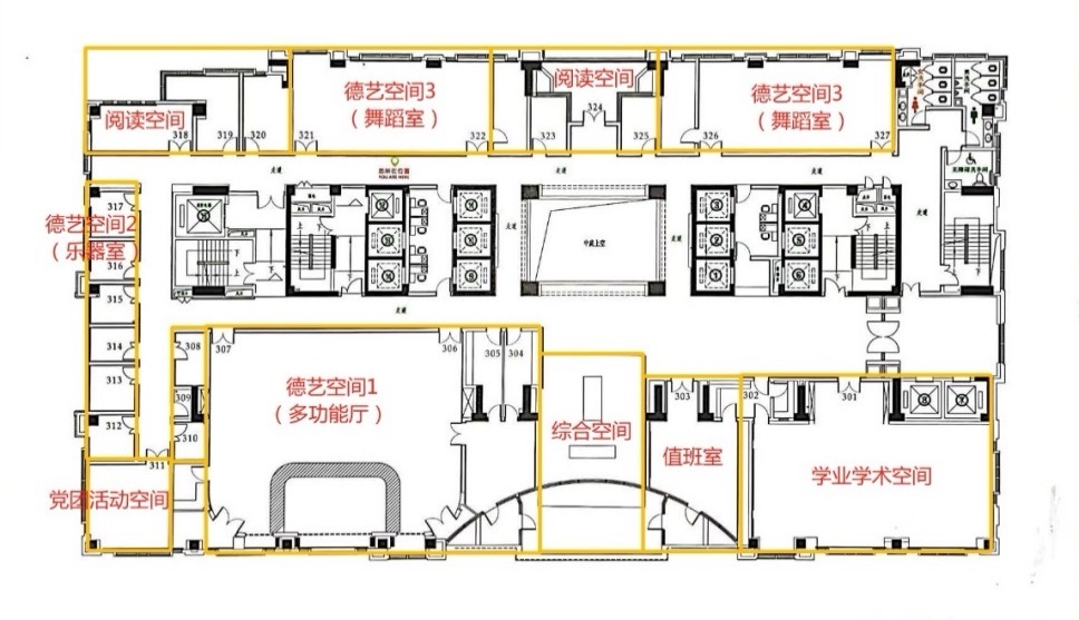 北校园“一站式学生社区”——柯麟书苑,配备有阅读空间、德艺空间、党团活动空间、学术学业空间等丰富的第二课堂活动空间场域,旨在为北校师生提供党团建设、学术研讨、师生交流、休闲阅读等多元化场地服务。