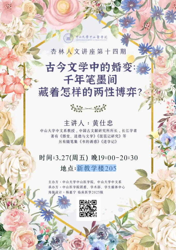 导航痕迹 大陆娱乐城 科学研究 学术讲座 杏林人文讲座第十四期 科学研究 科研通知 学术讲座 科研平台 办理指引 杏林人文讲座第十四期 古今文学中的婚变千年笔墨间藏着怎样的两性博弈? 发布人:张玉琦 发布日期:2026-03-25