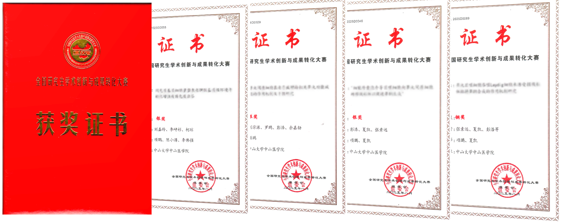 本届大赛由国家自然科学基金委员会计划与政策局成果转化处、教育部高等教育司指导,全国研究生学术创新和成果转化大赛组委会主办,以“立德树人、学术创新、成果转化”为主题,经过严格审核,全国84所高校和医院的305个项目晋级决赛,涵盖基础医学、临床转化及交叉学科前沿领域。我教育部重点实验室博士研究生团队在激烈的竞争中脱颖而出,经过严格初审,顺利晋级现场答辩环节,并最终斩获4项国家级大赛奖项,其中银奖3项,铜奖1项。